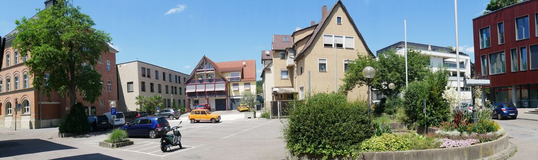 Auf der Südseite verbleibt ein Parkstreifen, direkt daran angrenzend darf ein Mikrowald wachsen; viele kleine Bäume und Sträucher sollen sich im Wettkampf messen, wem es in der Ortsmitte am besten gefällt und wer es mit wem am besten kann. Schon bald wird dieser „Tiny Forest“ Lebensraum, Klimaanlage und grüner Hingucker sein. In seinem Schatten lässt es sich auf Sitzstufen auch im Hitzesommer aushalten, die fußläufige Achse verbindet diese über den beliebten Grünbereich bei der Musikschule ins Kauffmannareal mit seiner sonnigen Treppe. Um sich die Nutzungsflexibilität bei der Baufläche des ehemaligen Küblerhauses langfristig zu erhalten, sind in diesem Bereich grüne Pavillons mit flexibler, temporärer Nutzung als Begegnungsraum und Werkstatt möglich. Hier sind bestimmt Ideen und Aktionen der Bürger gefragt. Um das Ganze zu finanzieren, wird der Platz in den Antrag auf Städtebauförderung aufgenommen, dann können 70 % Zuschuss vom Land fließen. Die Umsetzung wird daher dieses Jahr noch nicht möglich sein.