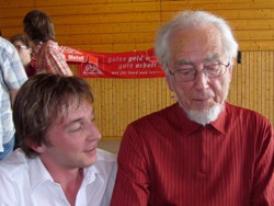 Dass er als junger SPD-Kreisvorsitzender die "alten Hasen" braucht, hat Sascha Binder in der Vergangenheit mehrfach betont. Vor Kurzem holte sich der 24-jährige Binder Rat bei einem besonders Erfahrenen. Am Rande einer Veranstaltung zur Diskussion des neuen Grundsatzprogramms der SPD unterhielt er sich mit Erhard Eppler, ehemaliger SPD-Landesvorsitzender und Bundesminister für wirtschaftliche Zusammenarbeit a.D., über die Programmdiskussion der Sozialdemokraten.