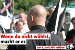 Motiv war der Hinterkopf eines rechtsradikalen Skinheads mit dem Spruch "Wenn du nicht wählst, macht er es!" (Foto links). Dafür erhielten sie nun neben einer Urkunde der Bundesvorsitzenden von Jusos und SPD, Franziska Drohsel und Franz Müntefering auch ein Paket mit aktuellen Wahlkampfmaterialien sowie einer signierten Autobiografie des Kanzlerkandidaten Frank Walter Steinmeier. Der AG-Vorsitzende Jan Petter meinte dazu: "Wir freuen uns, dass unser jugendlicher Kurs bestätigt wurde. Gemeinsam mit Sascha Binder wollen wir auch weiterhin für eine moderne und gerechte Politik streiten." So planen die Jusos unter anderem, auch zur Bundestagswahl ähnliche Motive zu entwickeln. Sie sollen dort veröffentlicht werden, wo junge Menschen große Teile ihrer Freizeit verbringen.