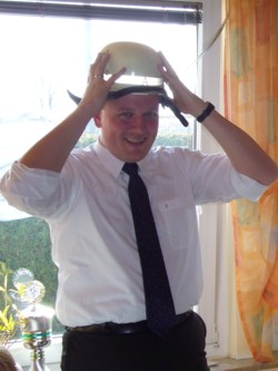 "Gut behelmt" konnte Kelber die Heimreise antreten. Ewald Schniepp von den SPD-Senioren schenkte seinem Gast einen Feuerwehrhelm.